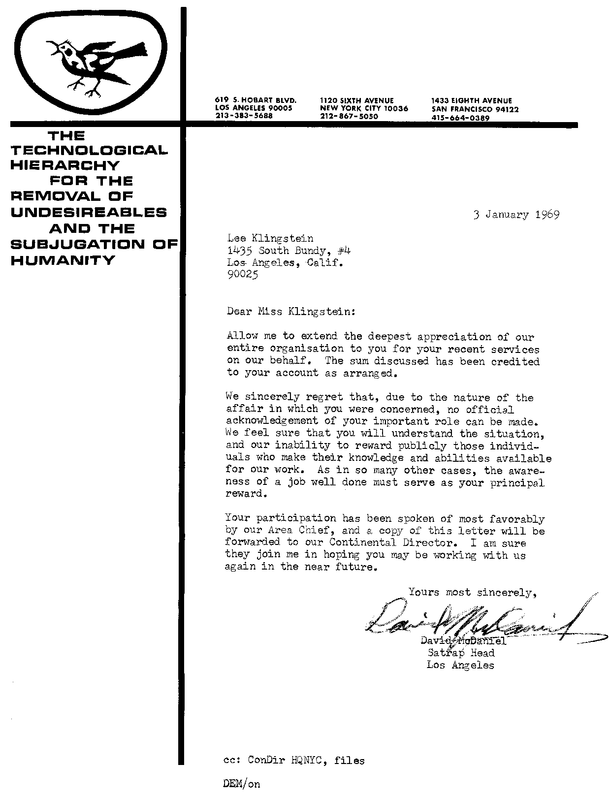 McDaniel was already a well-known member of the Los Angeles Science Fantasy Society (LASFS) when Barry Gold joined the club in November, 1964 and when Lee Klingstein first attended the club in August, 1967, but Dave's fan activity was conducted under the name he'd picked out of a phonebook when he wrote the letter that ultimately resulted in his joining the club: Ted A. Johnstone. Unlike many other authors, he wrote professional fiction under his real name and conducted his social life under a pseudonym – but almost everybody knew his real name as well.